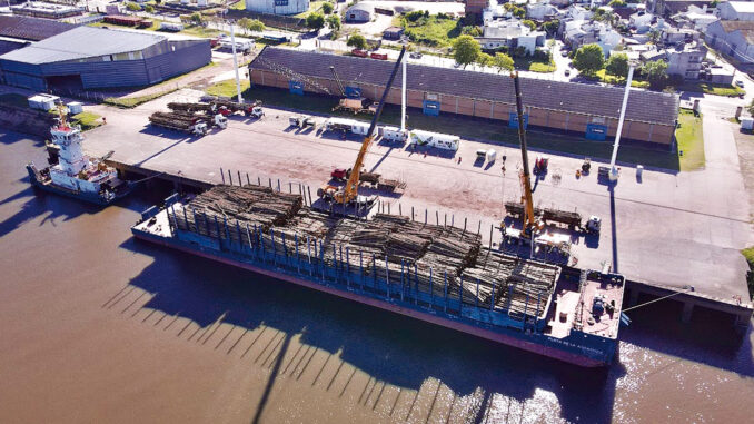 A principios de esta semana ingresó al puerto el remolcador Punta Diamante con la barcaza Playa de la Agraciada, ambos de bandera uruguaya, para concretar un embarque de exportación de 5.000 toneladas de troncos de eucalipto con destino a la terminal portuaria Punta Pereyra, en Uruguay.