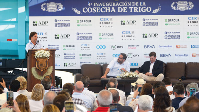 En ceremonia inaugural desarrollada en Perimetral Juan Manuel Blanes y Camino Rincón de Ruiz, en Dolores, departamento de Soriano, se procedió a dar oficialmente el puntapie inicial a la cosecha de trigo, contando con la presencia del presidente de la República y varias autoridades.