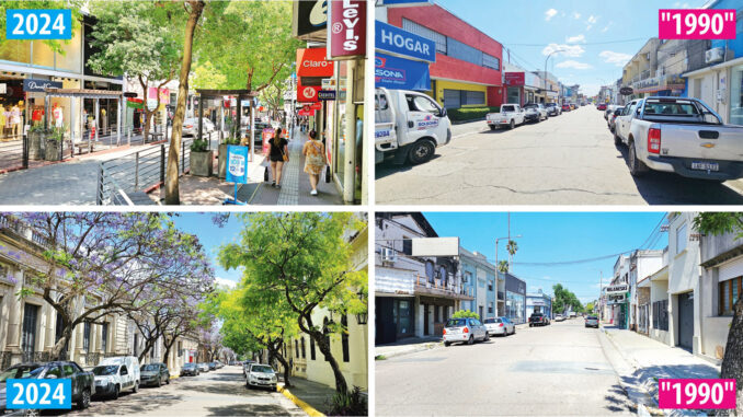 Con el paso de los años –apenas unos 10 o 20 según el caso; no tanto tiempo al fin y al cabo—podemos ver los resultados y hasta comparar las distintas visiones de ciudad, como en este caso contrastando imágenes de calles que permanecen casi inalteradas desde fines del siglo pasado y otras que fueron intervenidas oportunamente, para verse completamente llenas de vida, color y sombra alternadas con luz gracias al exuberante desarrollo de lapachos, jacarandás y otras especies de árboles muy nuestros.