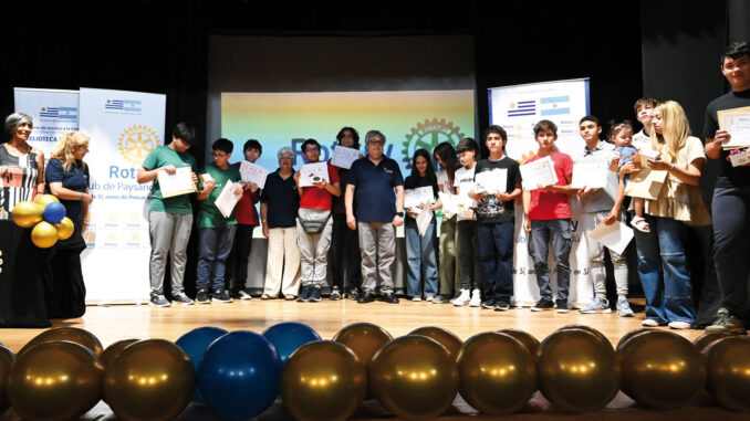 Teresa Ojeda, Miguel Rippa, Mirta Anchorena, Ana María López, Jorge Roveta, Roberto Basso y Rosmari Peralta, fueron los integrantes de Rotary Club Paysandú que entregaron el reconocimiento a estudiantes de Chapicuy, Gallinal, Guichón, Piedras Coloradas, Porvenir y Paysandú ciudad.