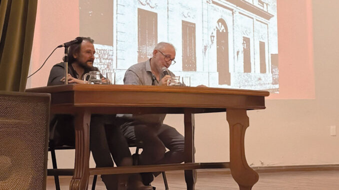 Antes de adentrarse en los detalles del libro, Oberti hizo una introducción sobre la historia de la sala donde se venía realizando la presentación. Originalmente fundada en 1879 como la Sociedad Musical Tomás Giribaldi, desde 1882 el edificio albergó al Ateneo de Paysandú, espacio que marcó profundamente la vida cultural y social de la ciudad, siendo escenario de reuniones, conferencias y conciertos significativos, entre otros aspectos.