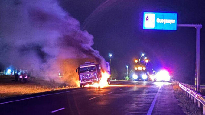 Un camión con zorra que se dirigía en dirección al sur reportó pérdidas totales al prenderse fuego, próximo a las 22.30 de anoche.