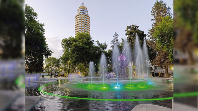 Anoche se realizaron pruebas de los juegos de agua y luces en la fuente central, junto con un ensayo parcial del espectáculo artístico que se presentará en la inauguración. Desde las 20.00 se evaluó el sistema de agua y luces, permitiendo apreciar patrones dinámicos de chorros que ascienden y descienden a distintas alturas en secuencias sincronizadas, acompañados por combinaciones de luces led sumergibles que cambian de color para crear efectos visuales impactantes.