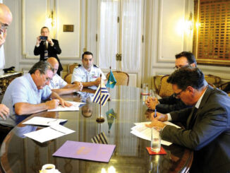 La rúbrica del acuerdo que habilita el arribo de seis aeronaves Super Tucano para la Fuerza Aérea Uruguaya (FAU) y un simulador se concretó este martes, en la sede de Defensa Nacional. Participaron, además de Castaingdebat, el comandante en jefe de la FAU, Luis De León, y representantes del fabricante aeronáutico brasileño Embraer.