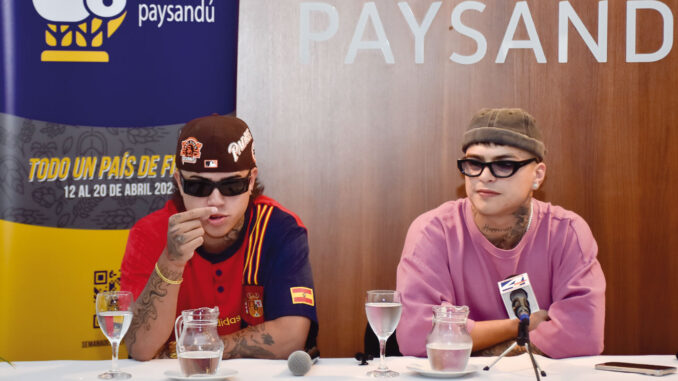 “Somos nosotros en todo momento”, dijo Tobías Medrano de La T y la M, al hablar de la autenticidad que junto a su compañero del grupo, Matías Rapen, mantienen más allá del éxito musical, de una carrera que iniciaron hace 5 años. En la conferencia de prensa que ofrecieron en el Gran Hotel, hablaron del vínculo que mantienen con los jugadores de la selección argentina, a la que tributaron homenaje con el tema “Pa’ la Selección” y que se convirtió en un hit musical. “Gracias a Dios esta es una banda muy relacionada con el fútbol. Justamente el tema este que le hicimos a la sSelección, que sinceramente lo hicimos desde nuestro humilde lugar y como una manera de devolverle un poco lo que nos venía dando”, les ha dado mayor popularidad, admitió Tobías. “Mucha gente nos conoce por el tema de la selección, creo que la gran mayoría”, consideró, aunque “previo a eso ya los jugadores venían consumiendo mucho nuestra música”, observó.
