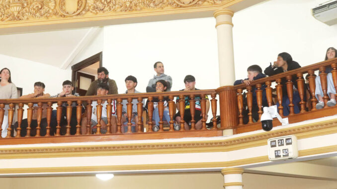 Un total de 38 adolescentes, acompañados por sus referentes educativos, recorrieron las instalaciones del legislativo departamental y presenciaron parte de la sesión ordinaria. La instancia permitió a los jóvenes conocer de cerca el funcionamiento del órgano deliberativo, así como el rol de los ediles en la vida democrática local.