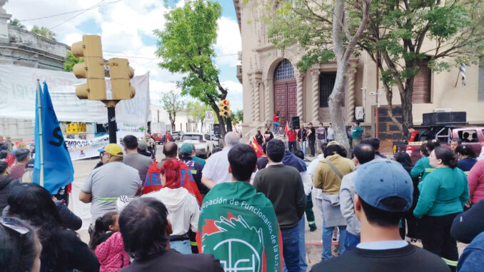 El PIT CNT realizó ayer un paro parcial y movilización por el centro de la ciudad bajo la consigna “Por trabajo, salario y presupuesto. Es tiempo de cumplir”, que culminó frente a la Intendencia de Paysandú.
