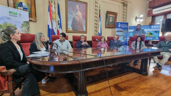En la presentación local de las actividades participaron el intendente Ricardo Molinelli, el alcalde de Lorenzo Geyres, Orlando Stoletniy, la secretaria general Gabriela Gómez, el coordinador del Gabinete, Manuel Appratto, el director de Turismo, Diego Torres, y las integrantes de la Sociedad Fomento de Termas de Guaviyú, Flavia Cerrudo y Belkys Toscanini, junto a Luciana Osaba, de la Comisión de Turismo de la Junta Departamental.