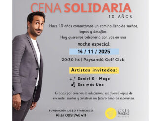 La Fundación Liceo Francisco llevará a cabo una cena solidaria el próximo viernes 14 de noviembre, desde las 20.30 en el Paysandú Golf Club. En este sentido, invita a toda la comunidad a participar en esta actividad, un encuentro que une corazones y esfuerzos para que más jóvenes vulnerables de nuestra ciudad tengan oportunidades y un mejor futuro.