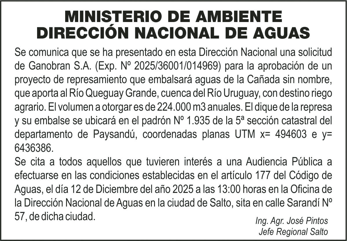 Por consultas, comunicarse a la Agencia Digegra, Paso de la Arena al teléfono 2312 3996.