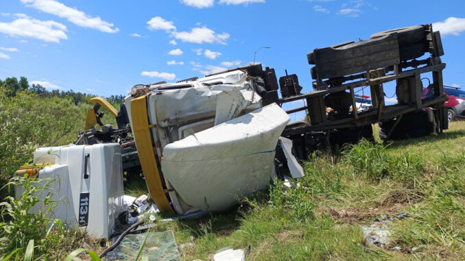De acuerdo a los datos recabados por EL TELEGRAFO, el pesado rodado, un Scania con matrícula STP 7892, circulaba al norte llevando el semirremolque con matrícula STP 4655.