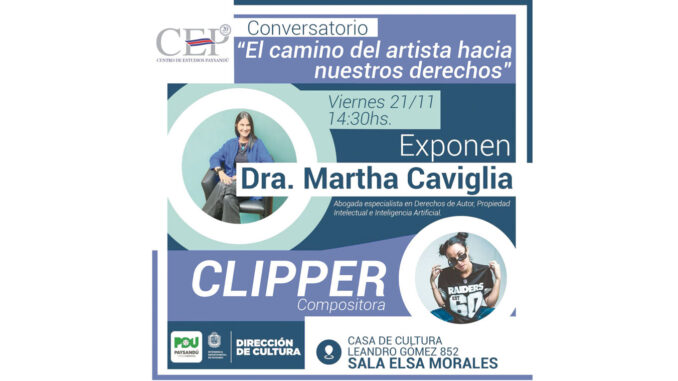 Bajo el título “El camino del artista hacia nuestros derechos”, la abogada especialista en propiedad intelectual Martha Caviglia y la compositora y rapera Clipper encabezarán una exposición que apunta a derribar prejuicios, acercar información y, sobre todo, revelar las vulnerabilidades cotidianas del sector cultural.