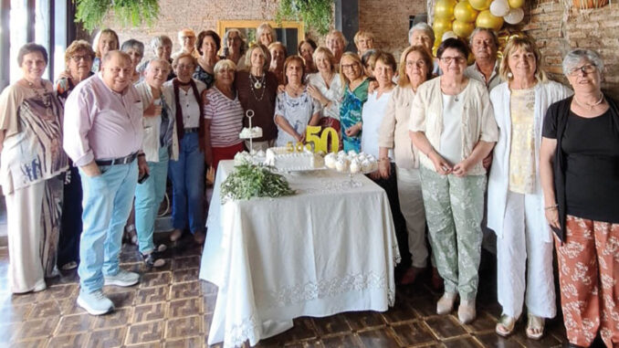 A 50 años de haberse recibido de maestras/os, el grupo de Generación ’75 festejó el aniversario de oro en un emotivo reencuentro. En esta oportunidad, la organización estuvo a cargo de Dorita, Edelma y Maria Rosa y como artesana y dibujante, Adriana Tenchio.