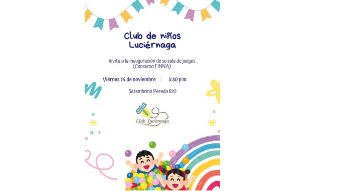 Este viernes 14 a las 17:30, el Club de niños Luciérnaga (INAU), ubicado en calle Setembrino Pereda 820, inaugura su “Sala de Juegos”, e invita a todos quienes quieran acompañar a este momento tan importante para la institución. La realización de este espacio fue posible debido a que resultaron ganadores en la 14.a edición de los Fondos para Iniciativas de Niñas, Niños y Adolescentes (Finna) que tiene como objetivo la promoción de los derechos de la infancia y la adolescencia, en el marco de los principios orientadores de la Convención de los Derechos del Niño y de la normativa expresada en la Constitución mediante el Código de la Niñez y la Adolescencia.