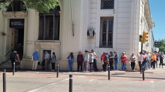 Desde temprano se formaron largas filas en el BROU por el inicio de la campaña de préstamos especiales para pasivos, vigente hasta diciembre. El sistema permite a jubilados y pensionistas solicitar un nuevo crédito o renovar el existente sin cancelar cuotas previas, con acreditación inmediata. Las sucursales atienden en horario especial, de 10 a 12.