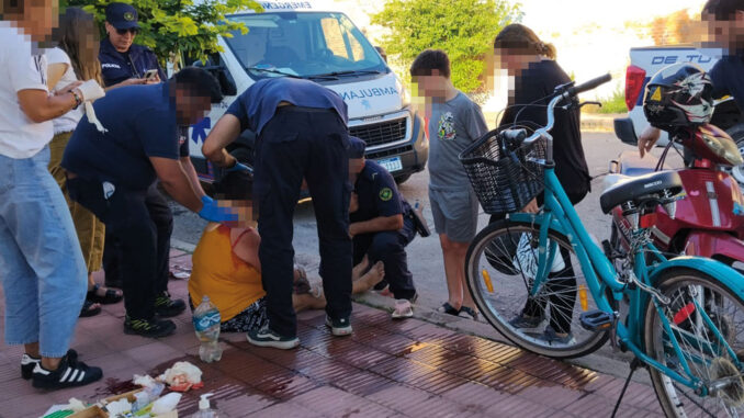 La señora fue prontamente asistida por vecinos de la cuadra, quienes dieron aviso al servicio de emergencias 911. Posteriormente se hizo presente personal de la Comisaría Primera, que pidió una ambulancia. Examinada, en forma primaria por un facultativo médico de UCEM, fue diagnosticada con traumatismo de cráneo con pérdida de conocimiento y otros traumatismos, por lo que fue derivada a un centro de salud.