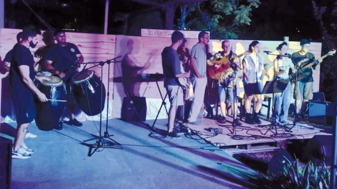 Antes del comienzo de las actuaciones, el presentador compartió un mensaje de la producción que funcionó como marco conceptual del encuentro, subrayando su carácter colectivo y autogestionado, y la idea de la música como puente para generar comunidad desde la cercanía y la escucha atenta. La programación fue diversa y coherente con ese espíritu, con música de distintos estilos, danza, una exposición de dibujos de Federico Romio, y la presencia del candombe a través de Mumacué, taller nacido en el barrio La Unión, que propone el tambor como herramienta de encuentro, identidad y celebración colectiva.