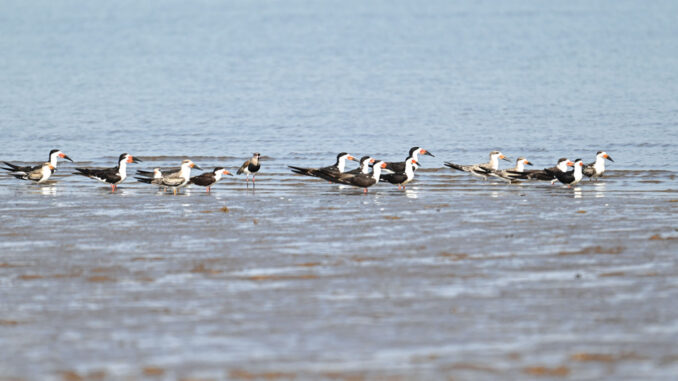 El Rayador (Rynchops niger) es un ave que habita ambientes costeros y nidifica en bancos de arena que se forman en los ríos Negro y Uruguay, así como también en las costas platense, atlántica y lagunas costeras. Mide 40 centímetros de longitud y su particularidad es su pico de gran tamaño rojizo y negro cuya parte superior (maxila) es más corta que su parte inferior y esto es lo que le permite conseguir su alimento (pequeños peces, crustáceos, insectos y moluscos) que consigue volando al ras del agua y “rayando” con su pico.
