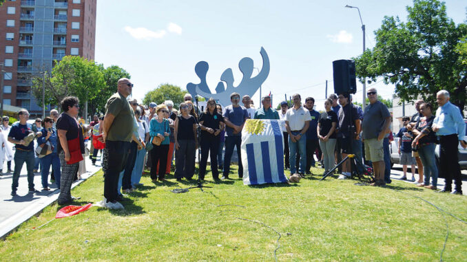 Previamente efectuaron un homenaje frente al memorial que recuerda la Huelga General de 1973, ubicado frente a la antigua fábrica Paylana, donde colocaron una placa recordatoria a Hermes Pastorini, exdirigente del Congreso Obrero Textil que lideró la huelga en dicha fábrica y exedil, recientemente fallecido.