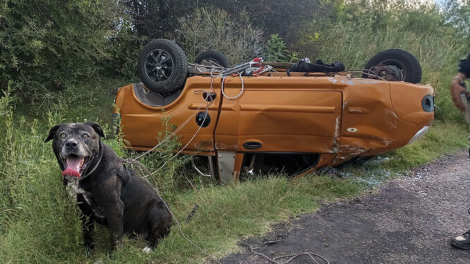 En el rodado, asimismo, viajaba un perro que se habría desenganchado de la correa que llevaba al momento de despistar. El animal fue encontrado ileso a varios metros del vuelco, por lo que se presume que salió por una de las ventanillas.