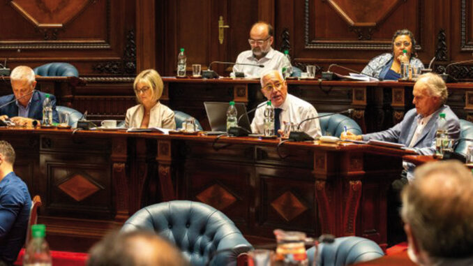 En cuanto al tema de la seguridad pública dijo que “no se resuelve en el corto plazo ni puede seguir siendo un botín de campaña electoral”. Esas fueron las primeras palabras de Negro referidas estrictamente a los temas de la convocatoria. Subrayó que “se construye con planificación, continuidad institucional y decisiones políticas firmes”.