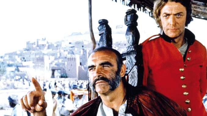 En esta oportunidad, y continuando con la programación de cine clásico de cada Fiesta de la Prensa, esta noche se exhibirá una de las mejores películas de aventuras de la historia del cine: El hombre que sería rey. Estrenada en 1975 y dirigida por John Huston está protagonizada por Sean Connery y Michael Caine. Este trío de grandes artistas se apoya esta vez en un cuento de Rudyald Kipling que cuenta la historia de dos amigos bastante chantas y bribones que después de traficar armas en la India deciden probar suerte en el lejano reino de Kafiristán.