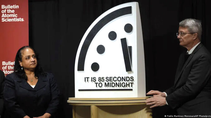 El reloj, gestionado por el Boletín de la Junta de Ciencia y Seguridad de Científicos Atómicos, se acercó este martes cuatro segundos más a una catástrofe en comparación con el año anterior, cuando marcó 89 segundos para el ocaso de la humanidad.