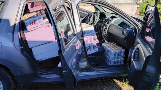 El hecho tuvo lugar en el kilómetro 190 de la ruta 4, donde los funcionarios policiales interceptaron un vehículo que circulaba en actitud sospechosa. Tras la inspección del rodado, se constató que en la carrocería habían ocultado 53 fardos de cerveza, cada uno conteniendo 24 unidades.