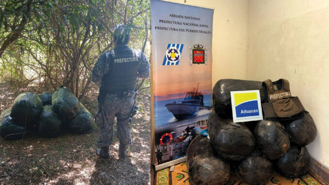 Personal de la Prefectura Nacional Naval incautó mercadería abandonada valuada en más de un millón de pesos uruguayos durante un patrullaje realizado en la tarde de ayer en la zona de Cuevas de San Antonio, en el kilómetro 339,200 del río Uruguay, en Salto.