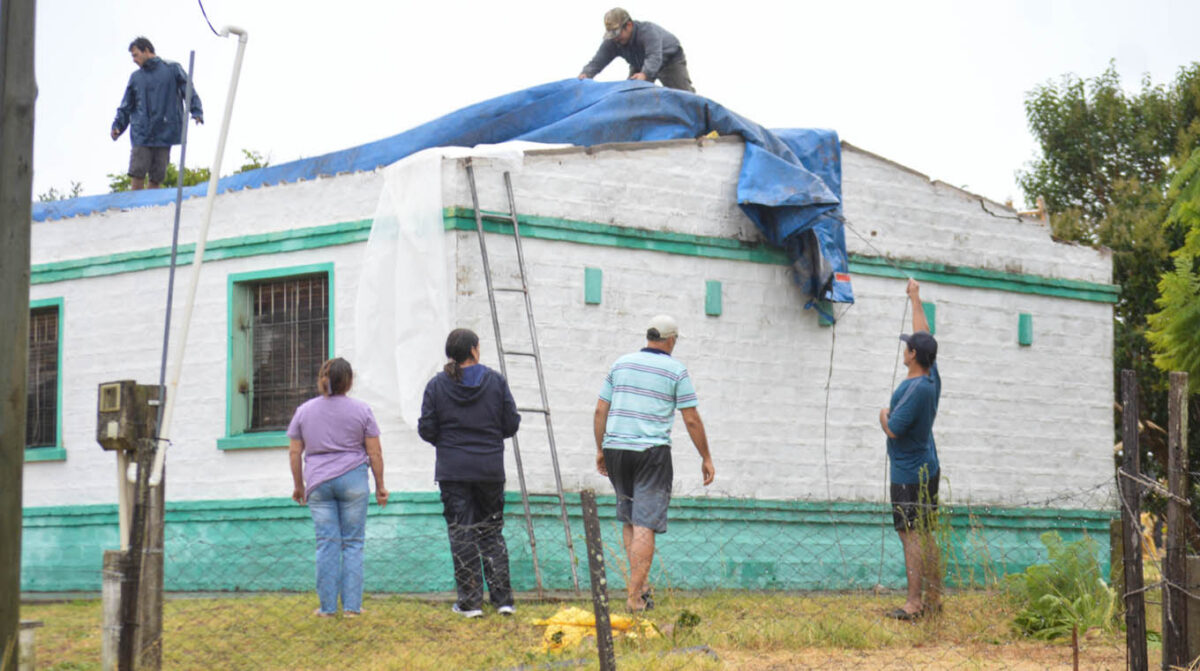El Municipio habilitó el Centro Cultural como refugio, donde fueron alojadas tres familias cuyas viviendas sufrieron la voladura total o parcial de sus techos.