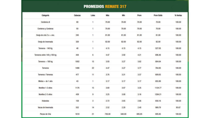 En la categoría terneros, en la víspera se destacó no sólo los valores que fueron muy buenos, con una tónica de mercado de principio a fin, con una puja muy importante y valores que sorprenden, con valores al bulto, de prácticamente 765 dólares.