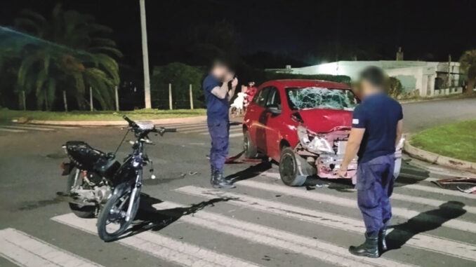 En esas circunstancias se produjo una violenta colisión entre ambos vehículos, quedando en evidencia la magnitud del impacto en los daños materiales, con el frente del automóvil seriamente afectado y la motocicleta prácticamente destrozada.