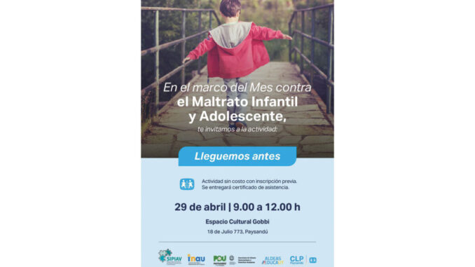 El próximo 29 de abril, de 9 a 12 en el Espacio Cultural Gobbi, se llevará a cabo una jornada denominada “Lleguemos antes”, enmarcada en el Día contra el Maltrato Infantil y Adolescente.