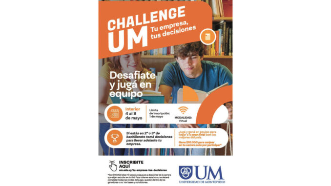 La Universidad de Montevideo abrió las inscripciones para el challenge “Tu empresa, tus decisiones”, una propuesta dirigida a estudiantes de bachillerato que busca acercar la gestión empresarial mediante una experiencia práctica y 100% online. La actividad para participantes del Interior se desarrollará entre el 4 y el 8 de mayo.