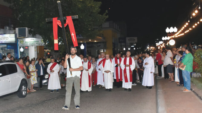 La comunidad católica sanducera participó este Viernes Santo del tradicional Vía Crucis interparroquial, que como ya es habitual partió desde la esquina de avenida España y Dr. Felippone. Organizada por la Basílica Nuestra Señora del Rosario y San Benito de Palermo, la convocatoria reunió a numerosos fieles, que recorrieron las distintas estaciones de la Pasión de Cristo entre rezos, cantos y lecturas. Niños, jóvenes y adultos caminaron hasta la Basílica en una marcha encabezada por sacerdotes, que culminó con la prédica del párroco Miguel Suárez.