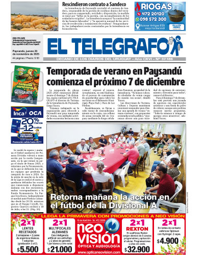 La temporada de playas 2025–2026 comenzará oficialmente el domingo 7 de diciembre, según confirmó a EL TELEGRAFO el director de Turismo de la Intendencia de Paysandú, Diego Torres.“Estamos trabajando en la organización para ofrecerle a Paysandú una gran temporada de verano, con múltiples actividades en nuestra hermosa zona costera”, expresó el jerarca. Actualmente, se está → Leer más