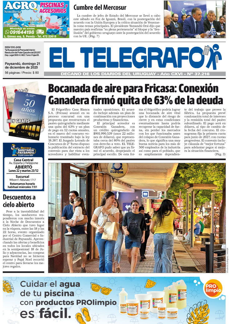 El Frigorífico Casa Blanca S.A. (Fricasa) avanzó en su proceso concursal con una propuesta que reestructura el pasivo quirografario mediante una quita del 63% y un plan de pago en 12 cuotas anuales, en el → Leer más