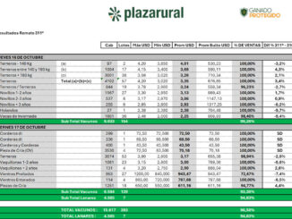 Se trata de un lote acondicionado grifa verde, con certificación RWS y plazo de 90 días para el pago. Por último, se informó de un negocio de 5.000 kilos de lanas Merino de 21 micras en Tacuarembó, a U$S 5,15 el vellón y U$S 1 los subproductos. Se trata de un lote con 79% de rendimiento al lavado, acondicionado grifa verde y con plazo de 60 días para el pago.