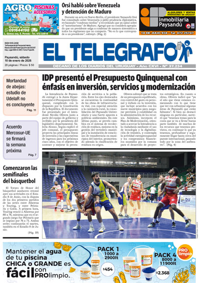 La Intendencia de Paysandú entregó a la Junta Departamental el Presupuesto Quinquenal, cumpliendo con lo dispuesto por la Constitución de la República. El documento fue presentado por el intendente Nicolás Olivera junto a parte del → Leer más